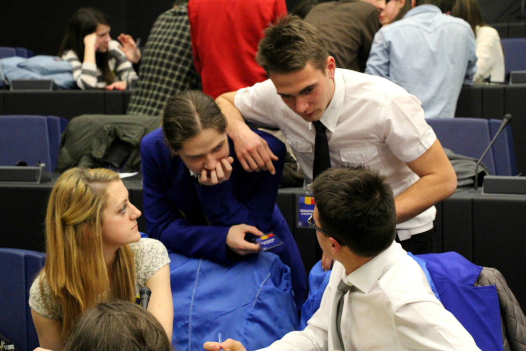 Acea zi de vineri a început cu puţină ploaie. Mohorâţi, obosiţi după nopţile de nesomn din timpul excursiei, am fost prezenţi la ora 8 în faţa Parlamentului European din Strasbourg. Fuseserăm anterior împărţiţi pe categorii de probleme de discutat, astfel încât fiecare dintre noi a primit un ecuson cu simboluri cu figuri geometrice, fiecare reprezentând chestiunea socială asupra căreia urmă să dezbatem.